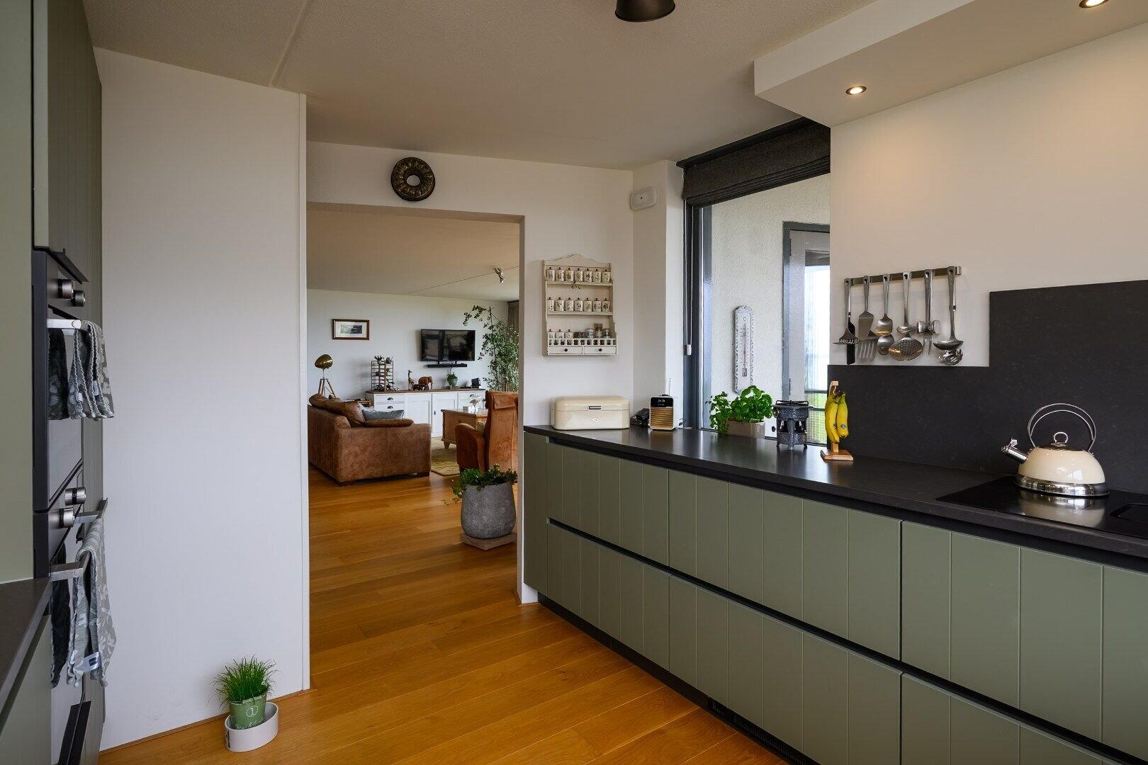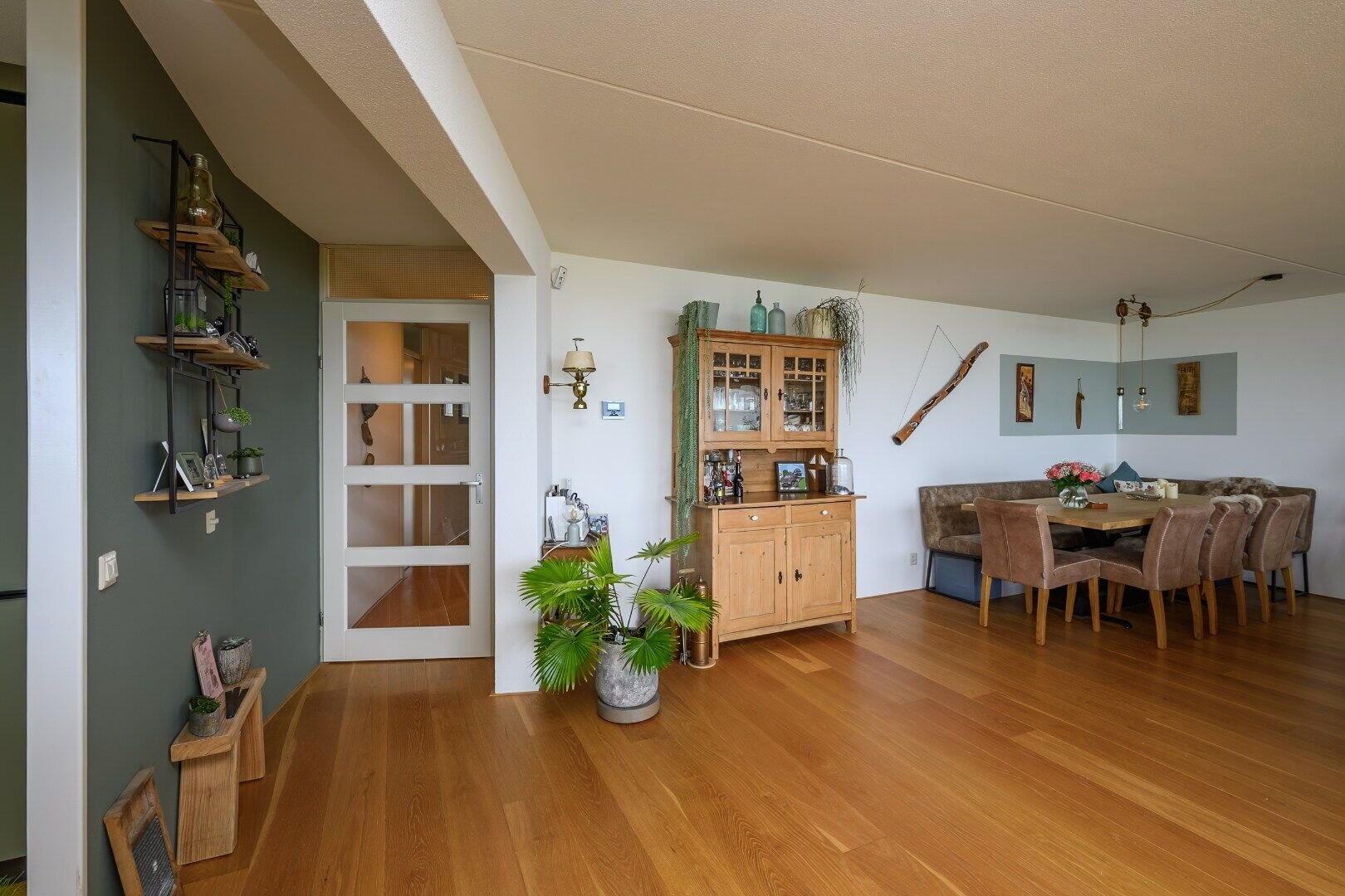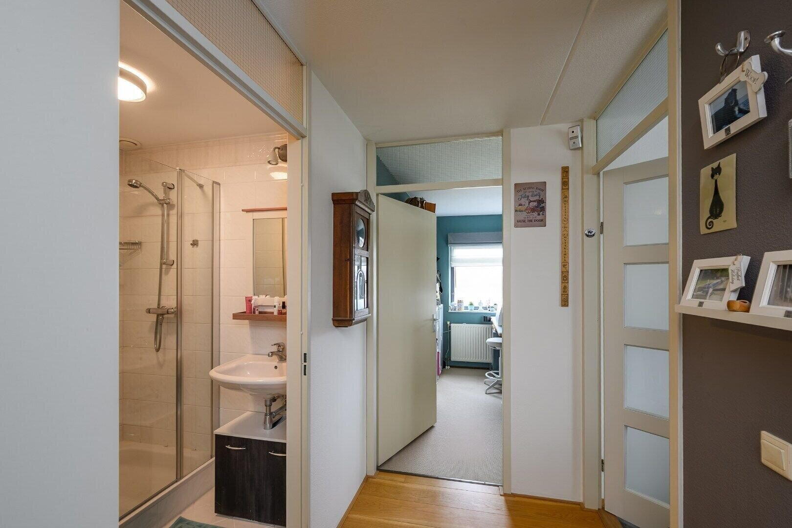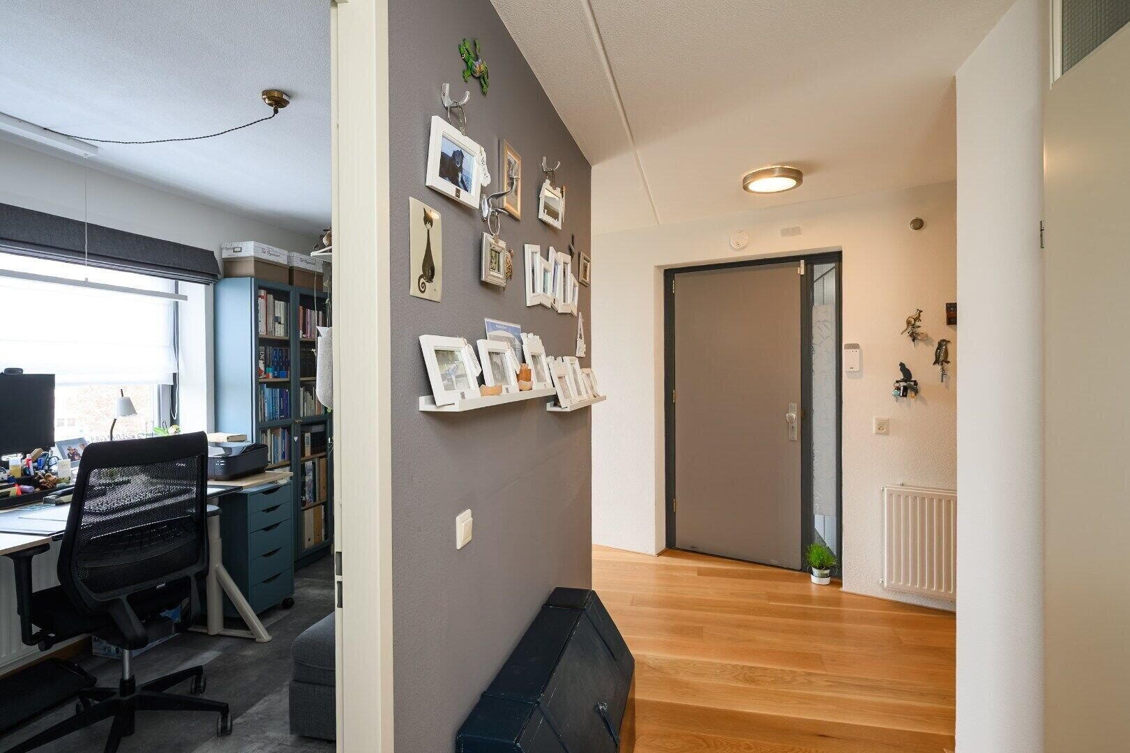 Via de voordeur komt u in het privégedeelte van het appartement. Deze speels vormgegeven, licht afgeronde hal geeft toegang tot de woonkamer, keuken, slaapkamers, badkamer, het separate toilet en de inpandige berging/wasruimte.